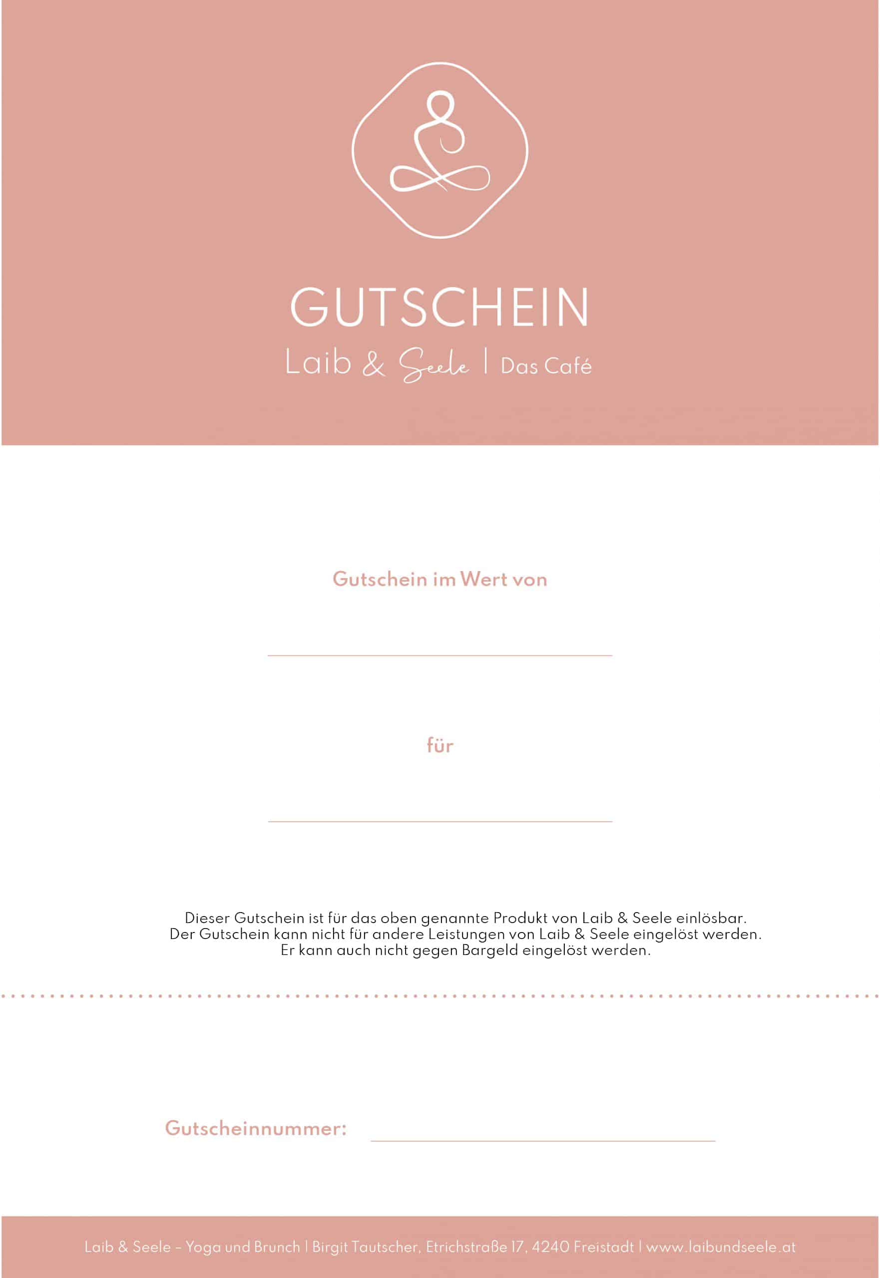 Der ausgewählte Gutschein ist für das jeweilige Eventformat gültig und kann nicht für andere Events oder andere Leistungen von Laib & Seele eingelöst werden.